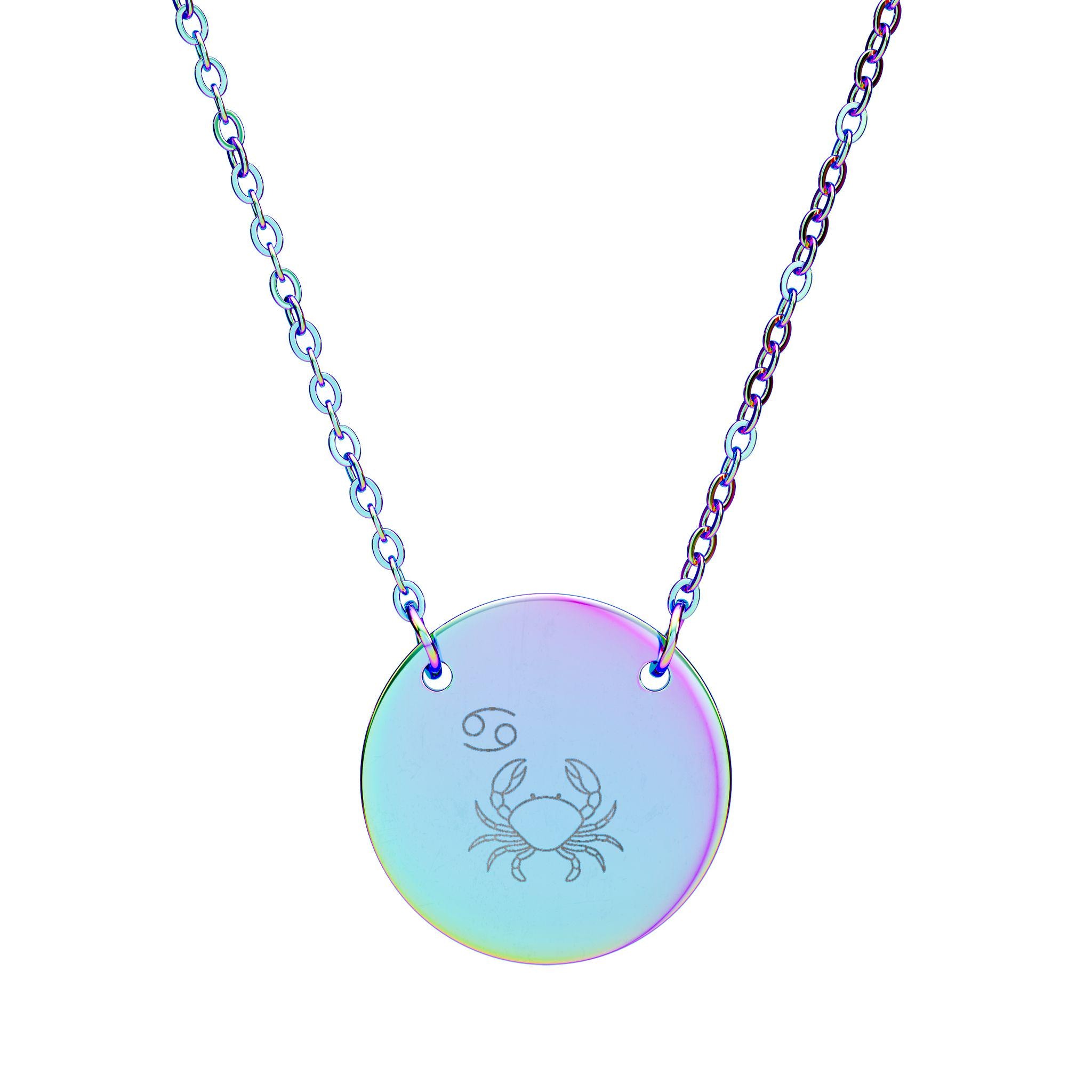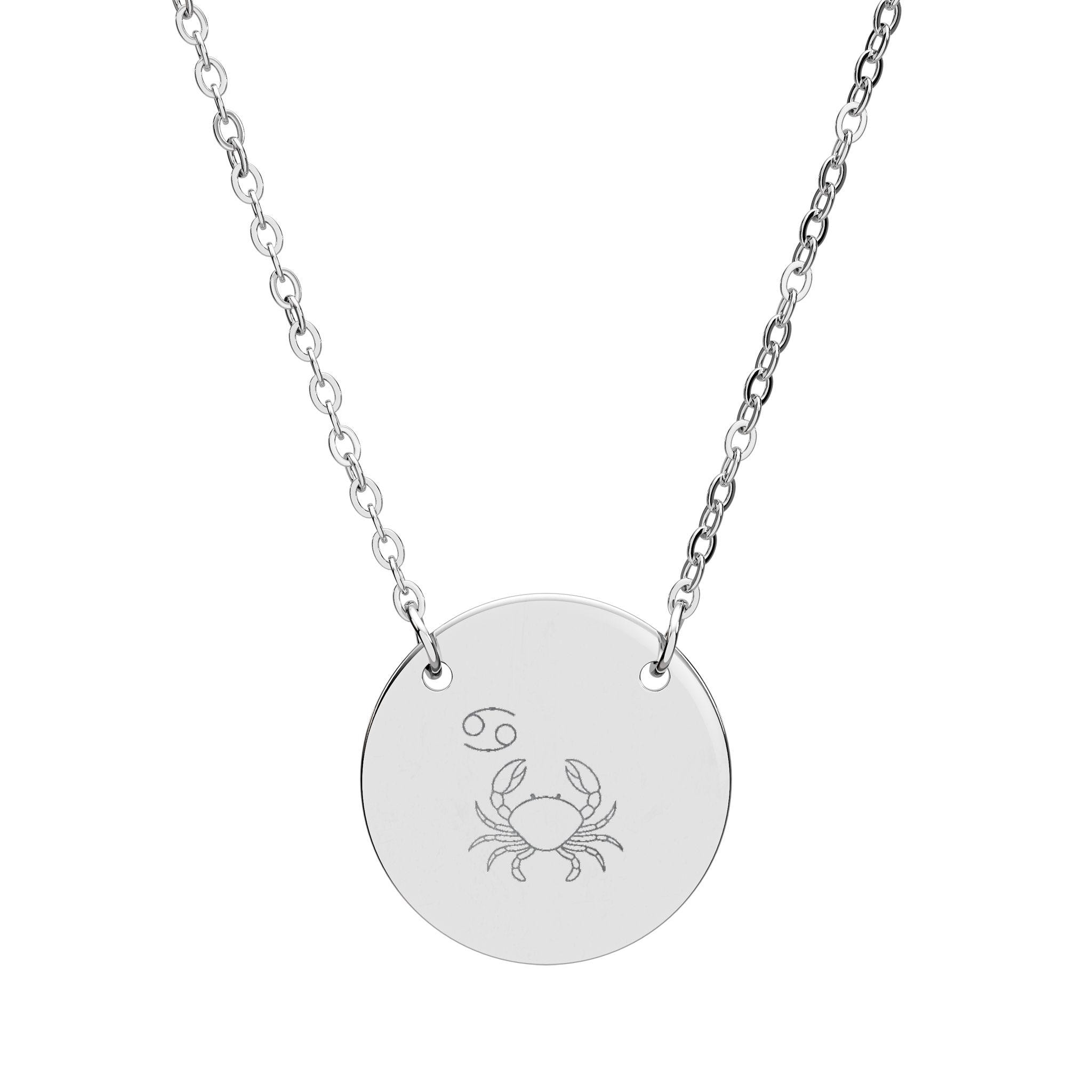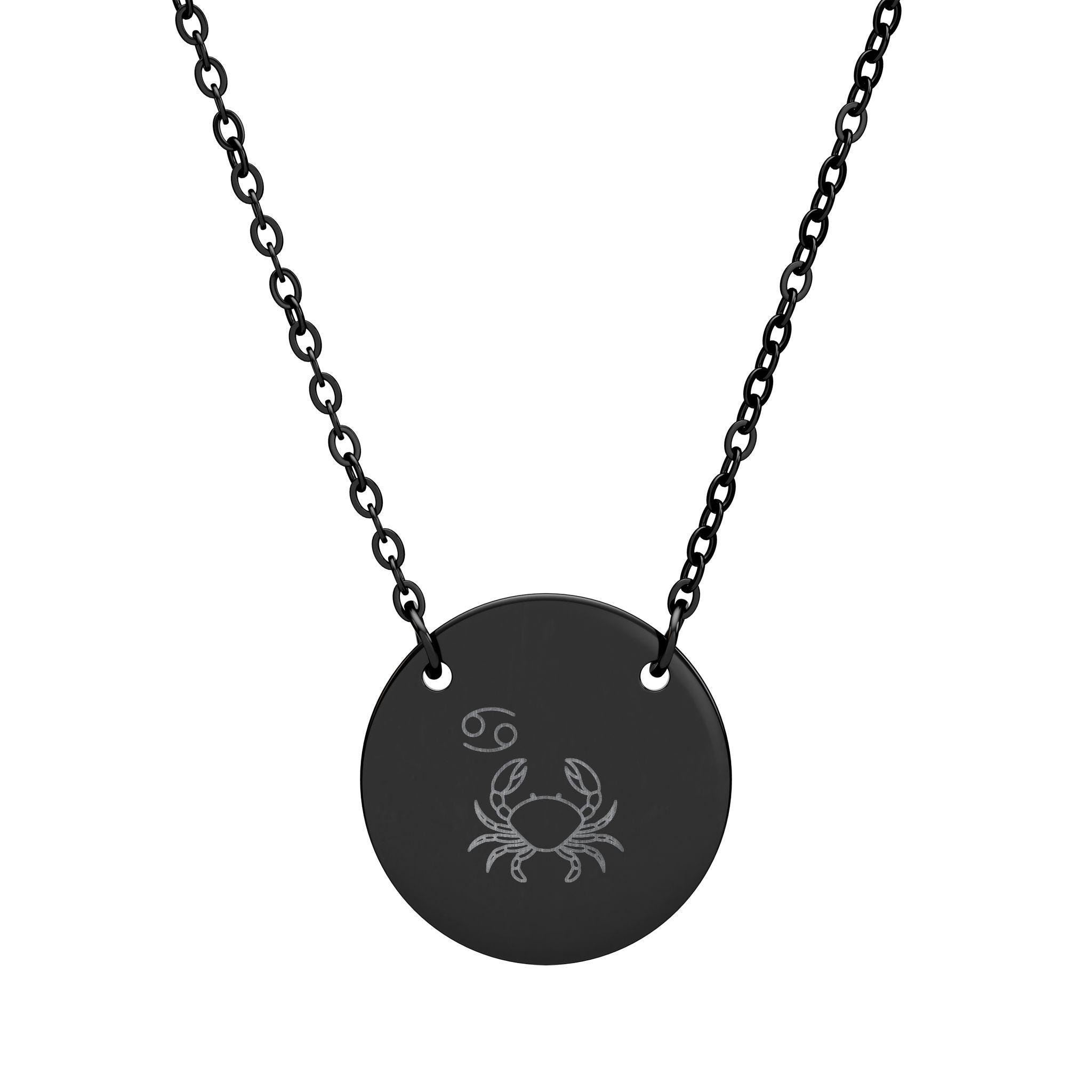 A simple, polished circle necklace with a finely engraved Crab motif that feels quietly personal. The slim 18mm pendant sits close to the collarbone, catching light with a subtle shine. It’s stripped of fuss — just clean lines, surgical-grade stainless steel, and a crisp laser-etched design that stays sharp over time. Wear it solo for an understated touch, or layer with other chains to build a lived-in, intentional look. This piece settles into everyday life: morning coffee, long walks, market runs, or a low-key gathering with friends. It speaks to someone who values small, meaningful symbols and durable, hypoallergenic materials that keep up with a busy rhythm.