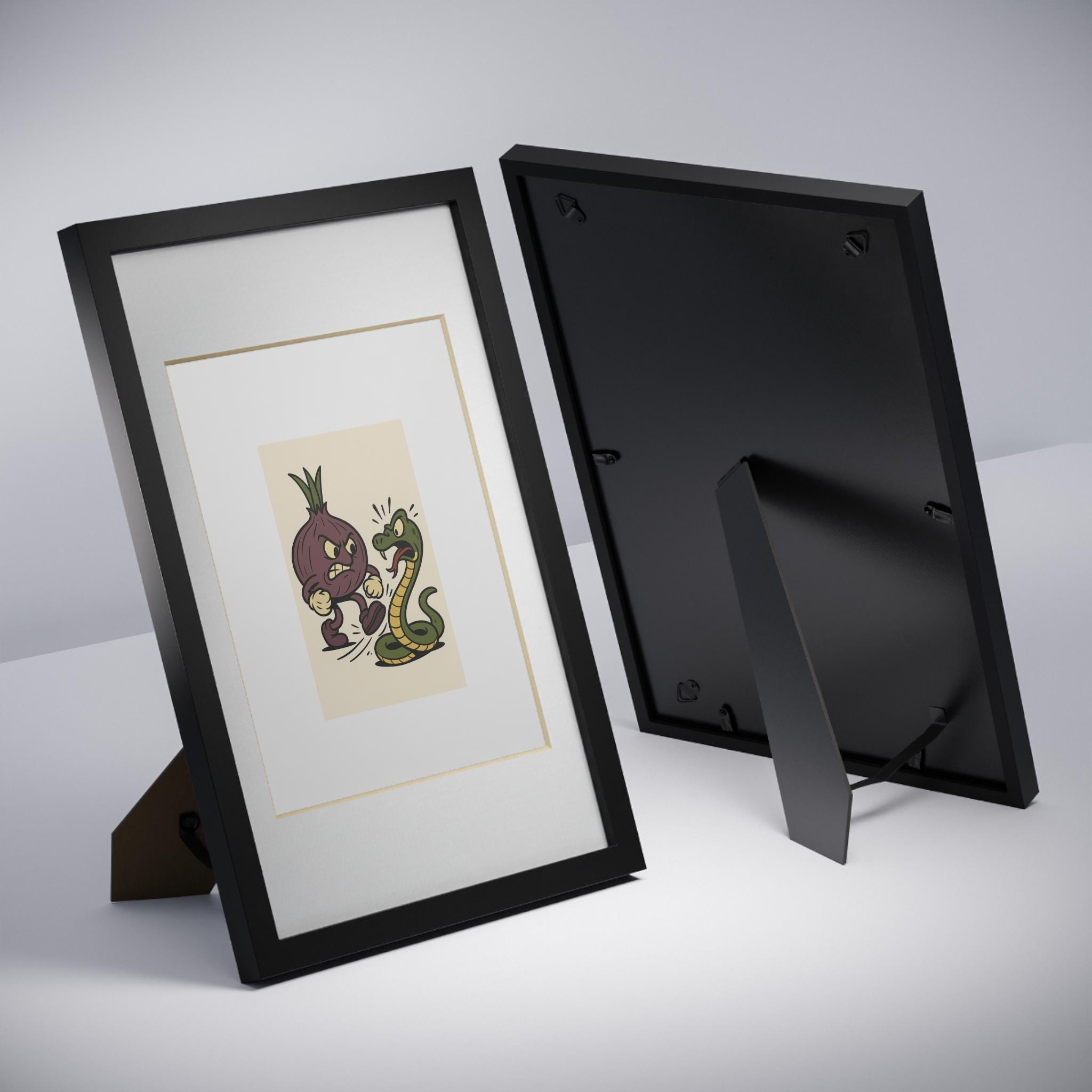 A framed poster that brings personality to walls and shelves. The rich, vivid print sits behind a clear Perspex cover and a crisp white matboard, all neatly housed in a slim black MDF frame. Choose from four sizes and vertical or horizontal layouts to suit your space. Hang it with the built-in loops or set it on a shelf using the removable stand — the result feels curated, clean, and ready to be part of your room’s story.