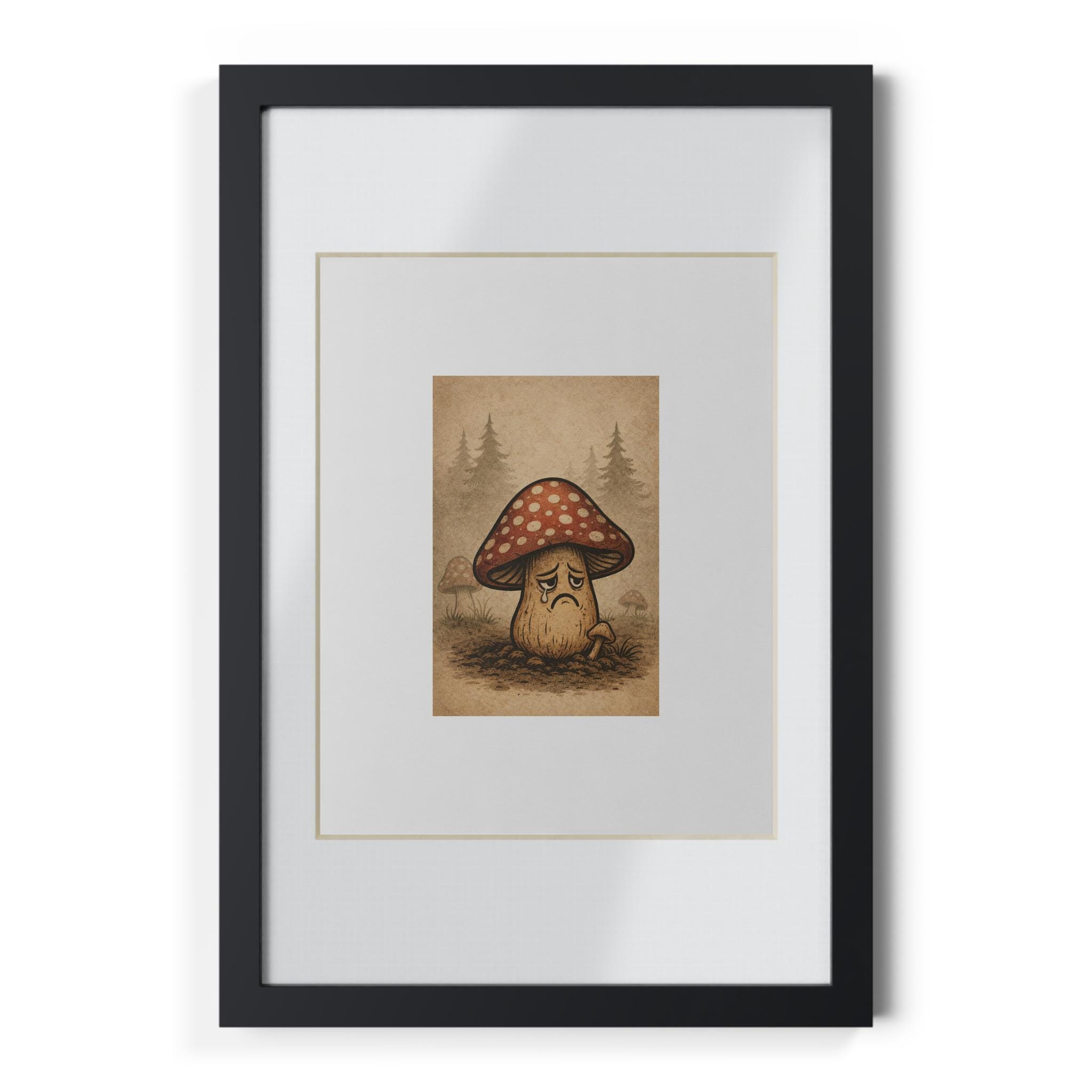 A framed art print that brings a quiet, woodsy mood into any room. The print sits behind a white inner matboard and a clear Perspex cover, all set inside a sleek black MDF frame. Rich, vibrant inks produce crisp detail and warm tones that make illustrated characters and soft backgrounds pop. Lightweight but sturdy, the frame arrives ready to hang with removable backing, hanging loops, and a tabletop stand so it can live on a wall or shelf. Choose from four sizes and horizontal or vertical orientations to suit your space and composition.